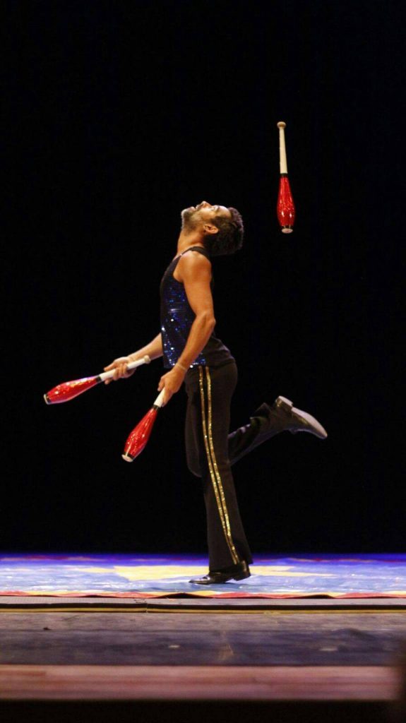 É especialista em malabarismo e equilibrismo, incluindo monociclo, escada livre, perna de pau, bola de equilíbrio e rola-rola. Como músico, ele também pode usar sua habilidade com instrumentos musicais para complementar suas apresentações circenses.