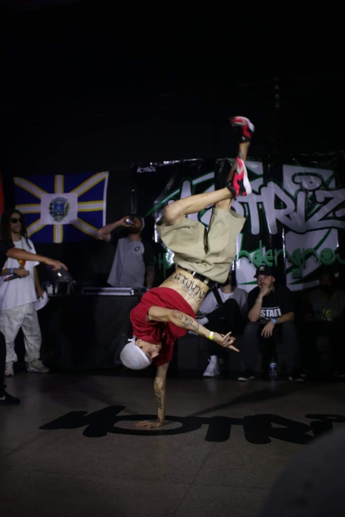 Gabriel Alves Carneiro nasceu em São Paulo, mas vive em Aparecida de Goiânia desde pequeno. Seu primeiro contato com a cultura Hip-Hop foi aos 11 anos de idade e desde então, ele se tornou um membro do popularmente conhecido Bairro Feliz Crew. Gabriel evoluiu seu estilo ao longo dos anos e participou das principais competições de Breaking do Brasil. Além disso, ele também fez trabalhos para marcas de roupas, atuou em uma peça teatral e esteve a frente da organização de eventos relacionados ao Hip-Hop. Gabriel também faz parte de um coletivo com bboys de várias regiões do Brasil chamado Bombreak, que leva a arte do Bboying a locais públicos e metrôs.