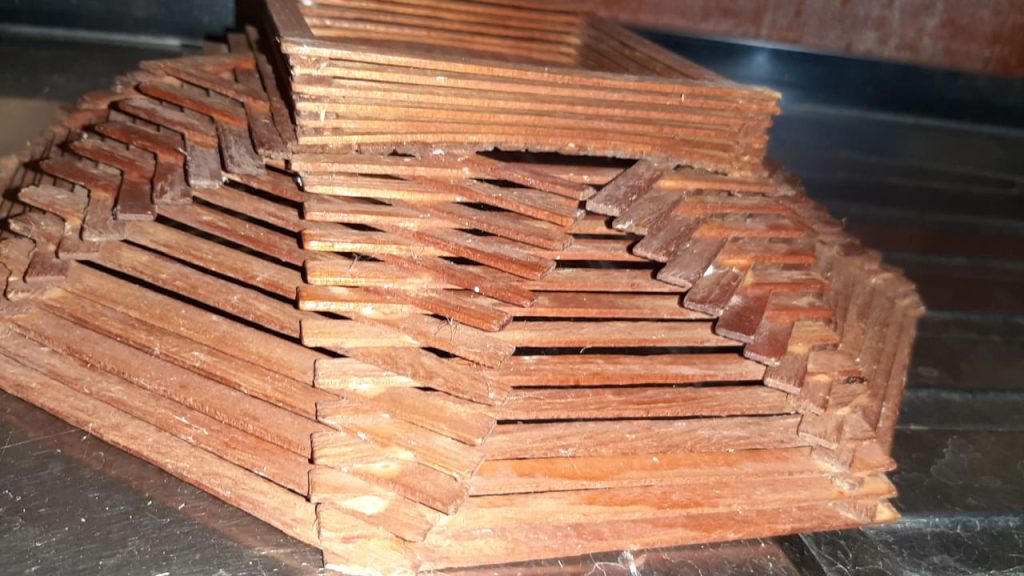 Produção de peças em madeira, utilizando diversas técnicas de corte, entalhe e acabamento para criar seus objetos.