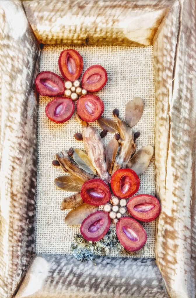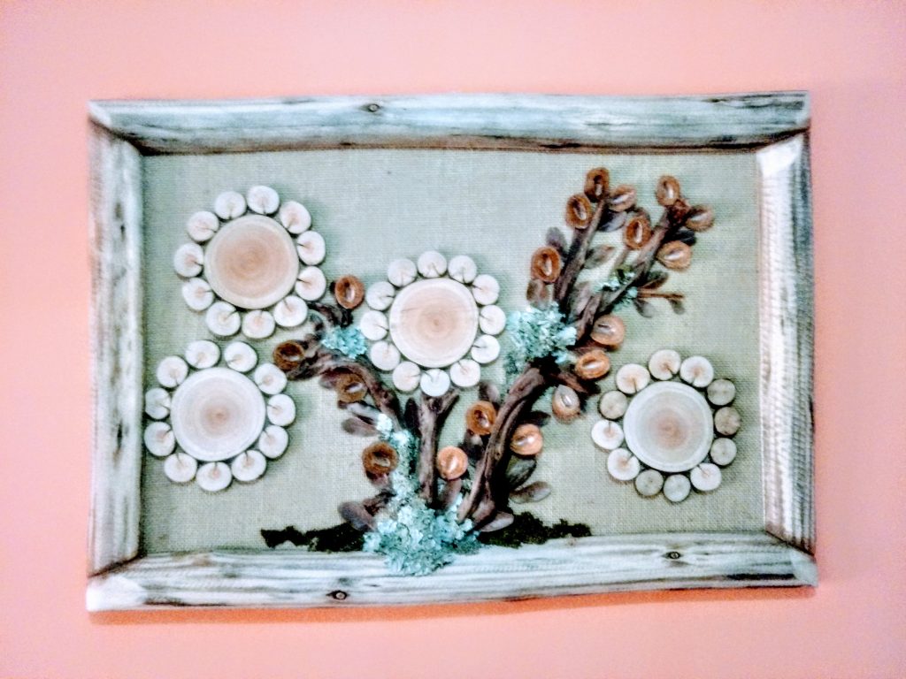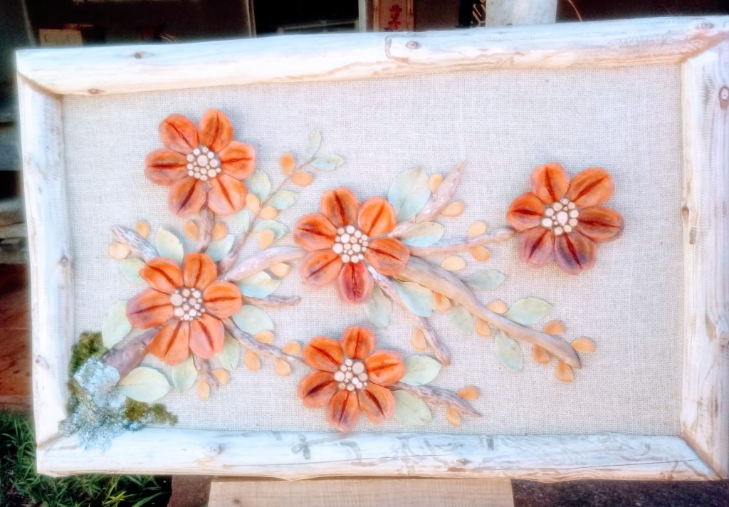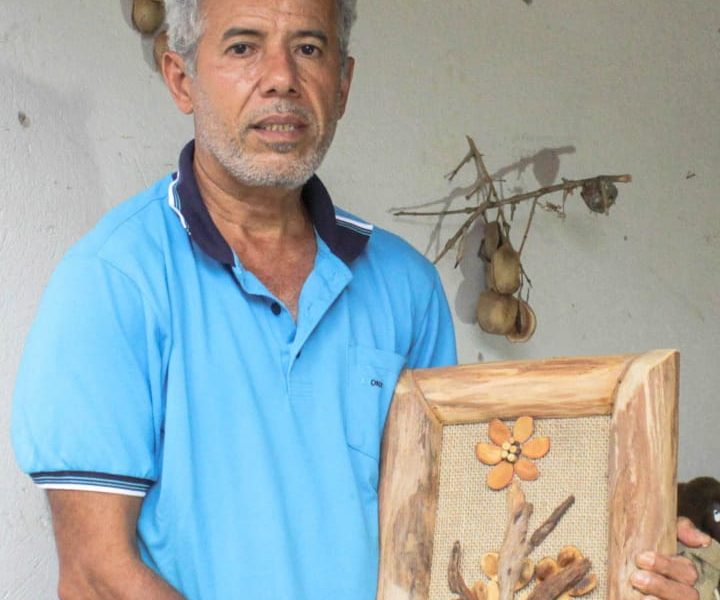 Reinaldo Alves Pereira é uma artista de Goiás que se dedica a criar peças decorativas que destacam a flora do cerrado. Sua produção é toda baseada em materiais orgânicos encontrados na região, como cascas de frutos, sementes, galhos secos, folhas desidratadas e cerne. Ele fixa esses elementos sobre uma base de madeira renovável e MDF para criar quadros, bonecos e topiárias que apresentam a diversidade de espécies existentes no cerrado, como barú, Jatoba, sucupira, jacaranda, pau santo, caroba, peroba rosa, binga de macaco, tento ou olho de cabra, escova de macaco e outros