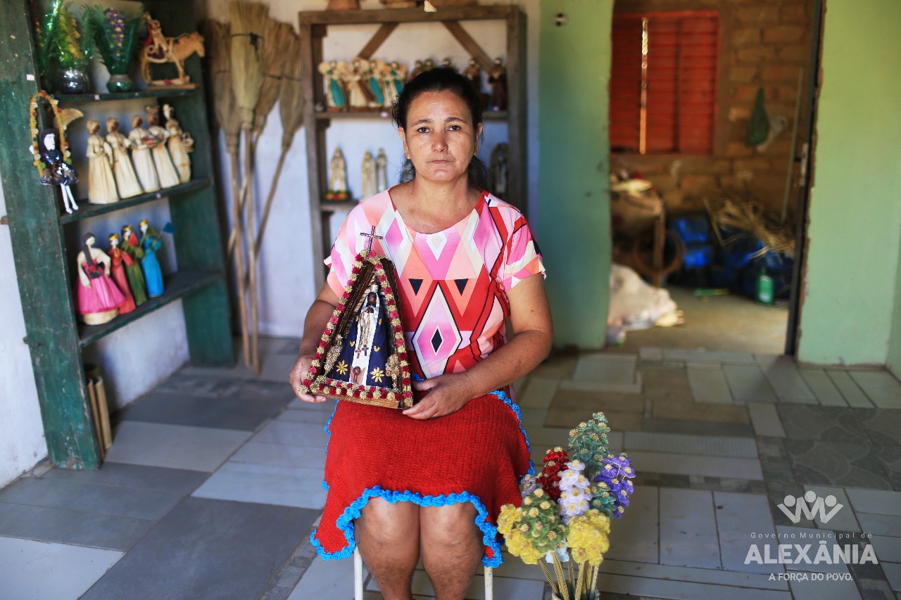 Com venda própria na porta de casa, Valdaci, mais conhecida como Valda, trabalha há mais de 20 anos com artesanato, e utiliza produtos naturais como bucha, barro, palha, folha de bananeira e tecido para criar suas obras, que são de extrema delicadeza.